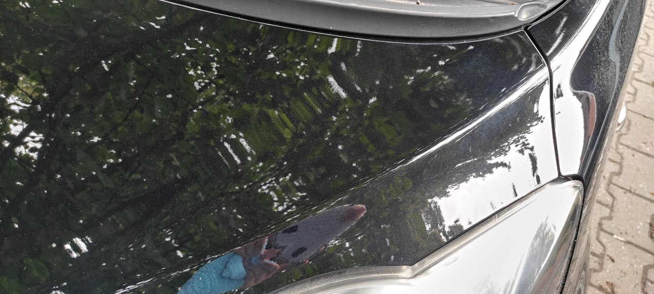 Danas osvežilo, pa sam iskoristio da ispoliram haubu. Koja je bila bas izgrebana, kao da je neko namerno prelazio nečim abrazivnim. I neke dugacke ogrebotine takodje. Elem, sjajna prilika da probam nove paste. I moram da kazem da su odlične. Pokusao sam uslikati haubu pre poliranja, mislim da se vide ogrebotine. Te najveće sam prešao sa šmirglom 2000 pa 3000.
