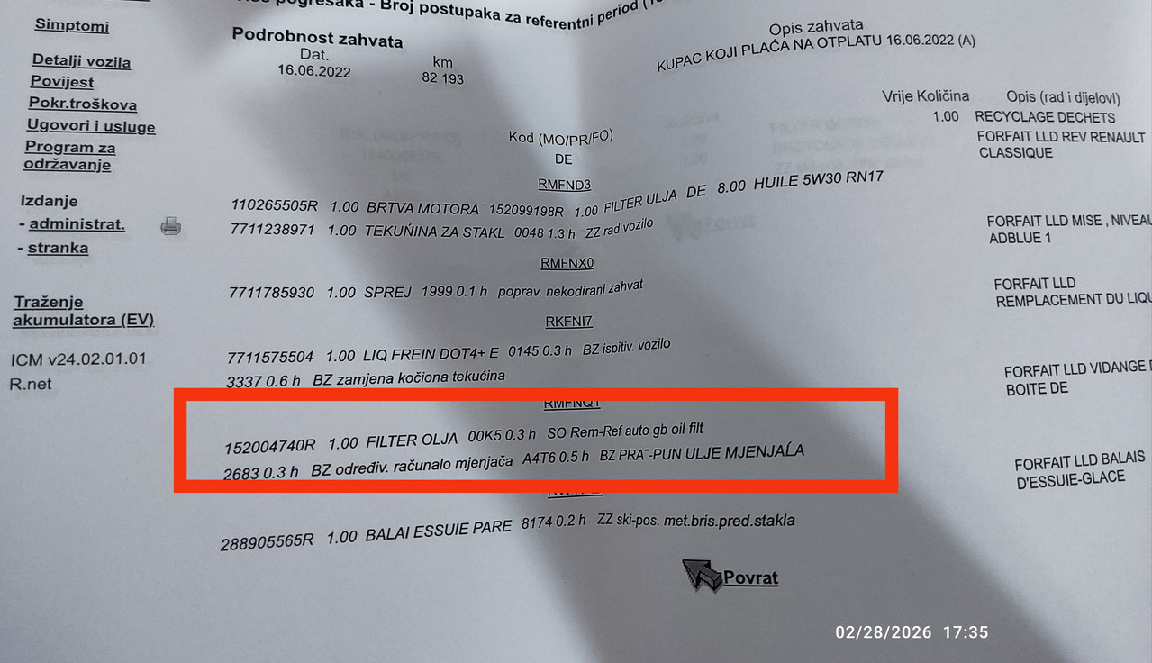 Citat: Stragi21 poslato 01.03.2026. - 10:40Ovde desno na fotki piše da je menjano ulje u menjacu na 82k u sklopu LLD