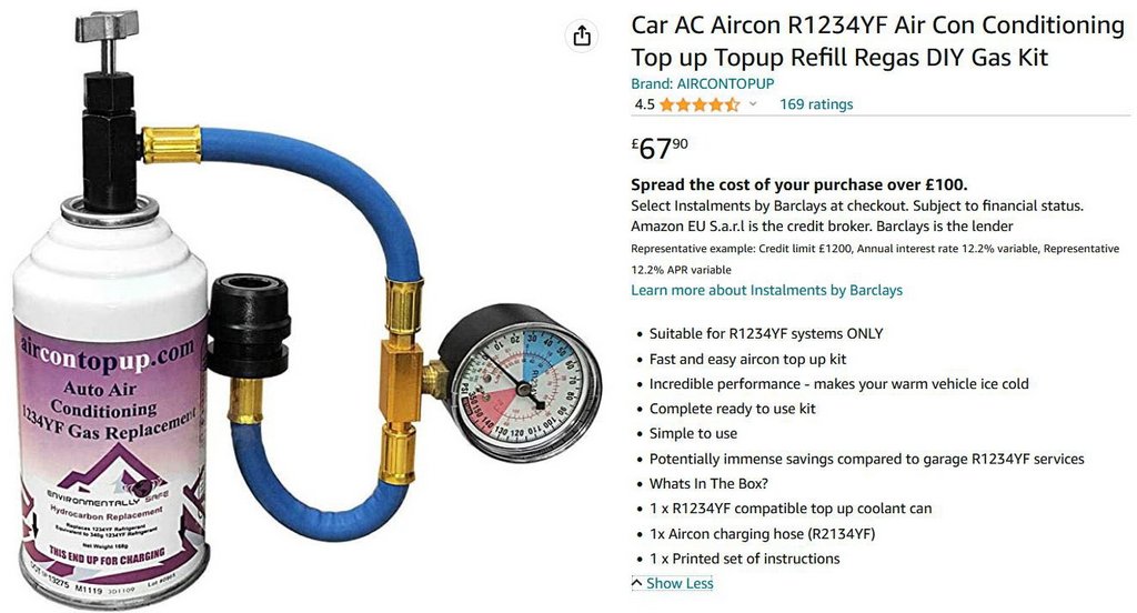 R1234YF je 5 do 25% manje efektivan u odnosu na R134a. Tako sam procitao.